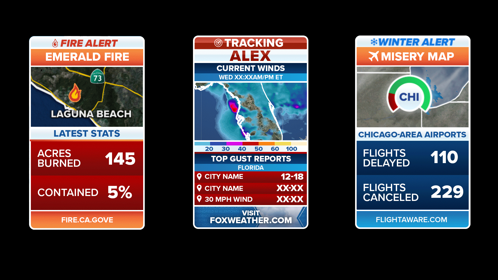 At first, I was tasked with creating a suite of over 50 fullscreen templates to display data for all aspects of weather coverage. I then focused on defining a modular visual system that could scale across contexts and scenarios.